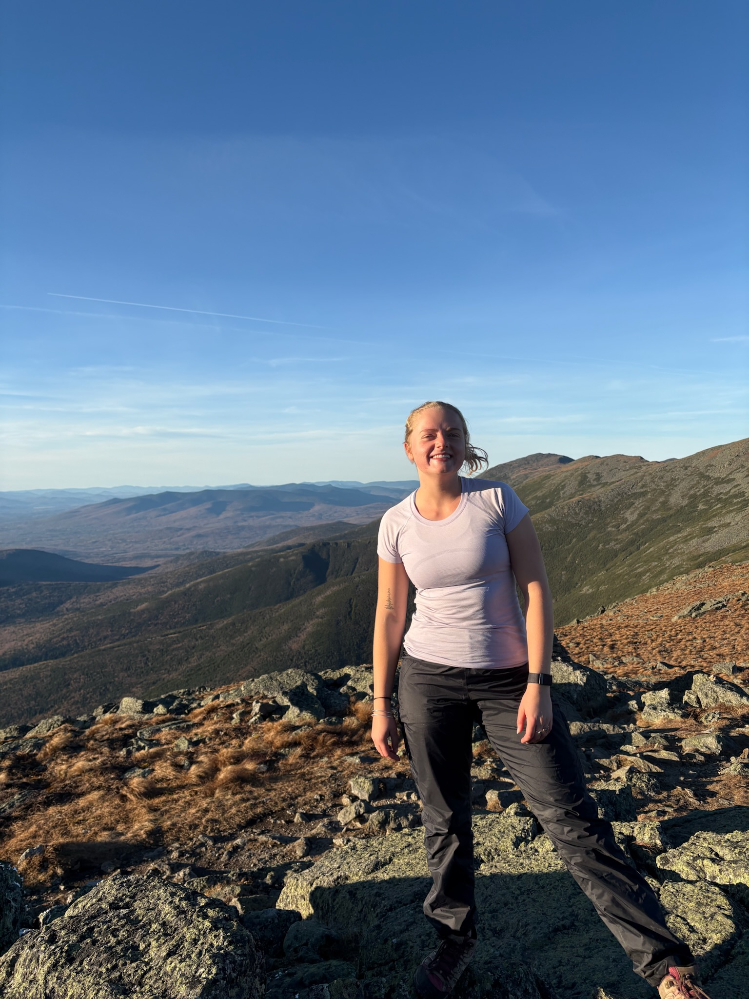 Lily hails from a town by the ocean on the south shore of Massachusetts, where as a child she quickly developed a knack for getting “lost” (exploring in my 6 year old opinion) in the outdoors. (Seriously. The adults at a neighborhood block party once spent two hours searching for her only to find her in the woods swinging on a makeshift tarzan jungle rope). While her navigational skills have improved, her love for the outdoors has remained a strong part of her life, especially over the past 4 years, where she developed a healthy(?) obsession with the hiking challenges of the New Hampshire white mountains. She is known for giving superior advice on outdoor adventure, such as, “it’s so easy to stay warm if you just don’t get cold,” and, “you won’t realize you’re tired if you just don’t stop.” Her biggest outdoor accomplishments include being the sweatiest person on every hike she’s ever done, and creating her world famous “post hike energy” playlist. Hiking, backpacking, camping, camp-firing, cliff jumping, and beach games are some of Lily’s favorite outdoor activities. When she’s not busy touching grass in some form or another, she enjoys playing guitar, seeing live music, trying new food places, supporting her favorite Boston sports teams (sorry), and watching stand up comedy. As an intended psychology concentrator, she’s looking forward to learning more about what it really is within her that draws her so strongly to the outdoors. |